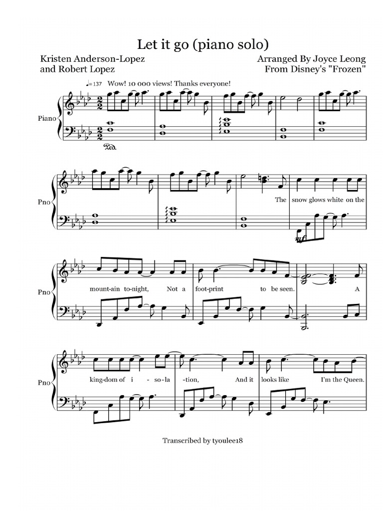 There are numerous arrangements for all levels of players. Once you download your digital sheet music, you can view and print it at home, school, or anywhere you want to make music, and you don't have to be connected to the. Print and download let it go (movie version) sheet music from frozen. Piano sheet let it go. Sign up now or log in to get the full version for the best price online.